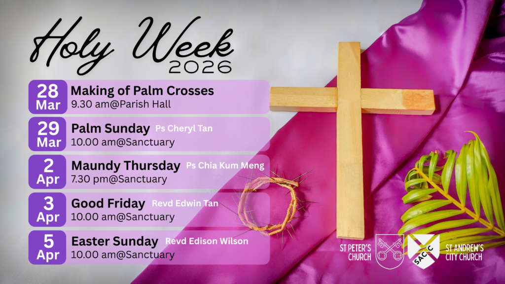This year, Holy Week begins on 29 March, Palm Sunday, leading up to Easter Sunday on 5 April. Come and join us to remember and explore what happened during that week. Also, let us explore why Good Friday is good.